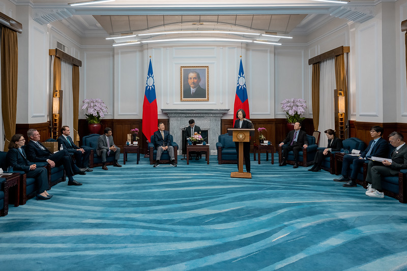 訪賓一行由美國國家韌力公司副董事長楊育民率領,經濟部長王美花陪同,前來總統府晉見總統,國家安全會議秘書長顧立雄也在座。