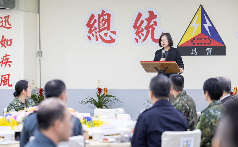 今天上午,除了到北部地區防空部隊了解裝備現況,我也到陸軍206旅步四營,關心首批一年期義務役新兵的營舍環境和訓練情況。我要請國防部落實各項訓練課程的執行,並且滾動檢討,確保訓練的品質及成效。