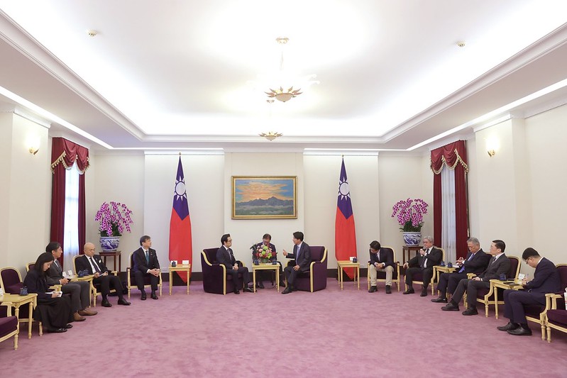 訪賓一行由外交部次長田中光、立法委員郭國文、「日本台灣交流協會」台北事務所代表片山和之及「臺灣日本關係協會」秘書長范振國陪同,前來總統府拜會副總統,國家安全會議副秘書長徐斯儉也在座。