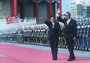陳總統水扁伉儷今天以隆重軍禮歡迎來華訪問的賴比瑞亞共和國總統泰勒暨夫人。
