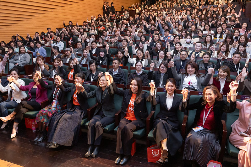 總統提到,她第一次參加「女人迷Womany」的活動是在2015年。9年前,社會對於臺灣第一位女性總統候選人充滿新鮮感。今天,她則是要以總統的身分與大家分享,這幾年在職場上體驗到的競爭及共好的經驗。