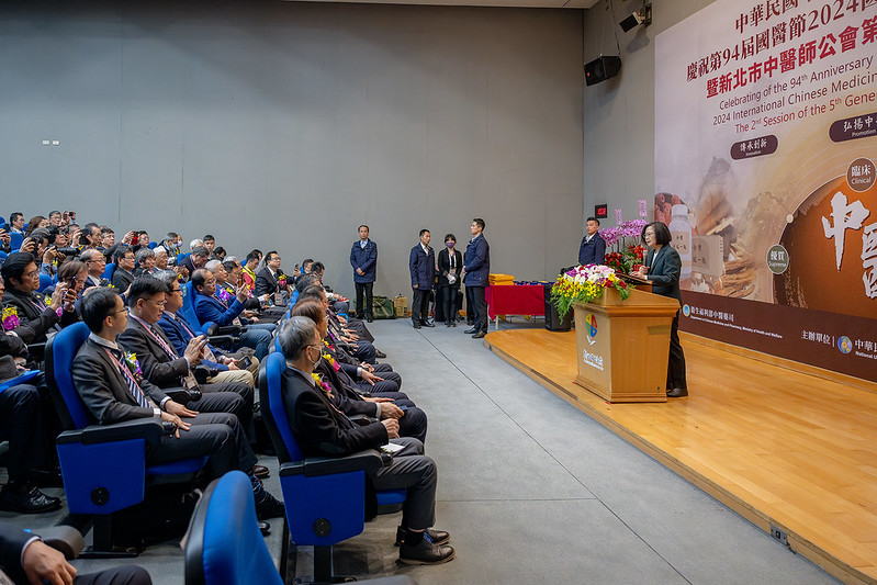 蔡英文總統今(10)日上午出席「中華民國中醫師公會全國聯合會慶祝第94屆國醫節2024國際中醫藥臨床學術大會」,感謝中醫藥界守護民眾健康,為臺灣醫療及學術研究用心奉獻,並期盼政府和中醫藥界在未來持續密切合作,建構更完善的服務,讓中醫藥蓬勃發展。