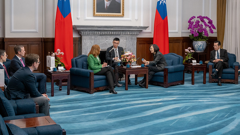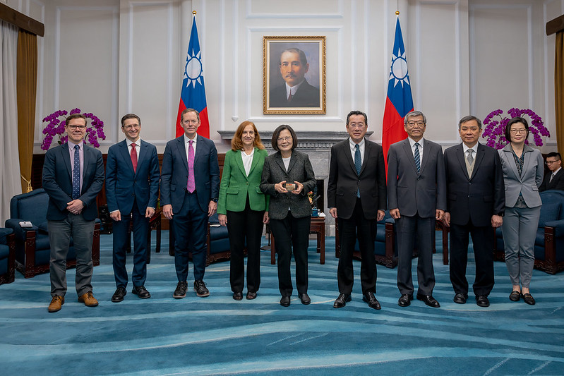 訪賓一行包括德國馬歇爾基金會印太計畫主任葛來儀(Bonnie Glaser)、歐亞集團中國事務執行理事華自強(John Rick Waters)、美國企業研究院資深研究員庫柏(Zack Cooper)及戰略暨國際研究中心費和中國研究講座主任白明,由外交部次長謝武樵陪同,前來總統府晉見總統,國家安全會議秘書長顧立雄也在座。