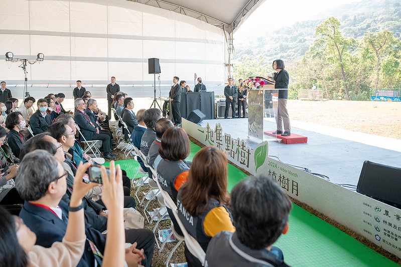 蔡英文總統今(12)日上午出席「113年一起集點樹-植樹節植樹活動」,邀請大家響應植樹活動,為臺灣的環境保育匯聚更大力量,厚實國家未來永續發展。並指出,政府積極造林,持續推動森林碳匯工作,強化森林碳匯量,達到淨零排放目標。期許持續紮根環境教育,喚起更多人的環保和淨零意識,共同為地球盡一分心力。