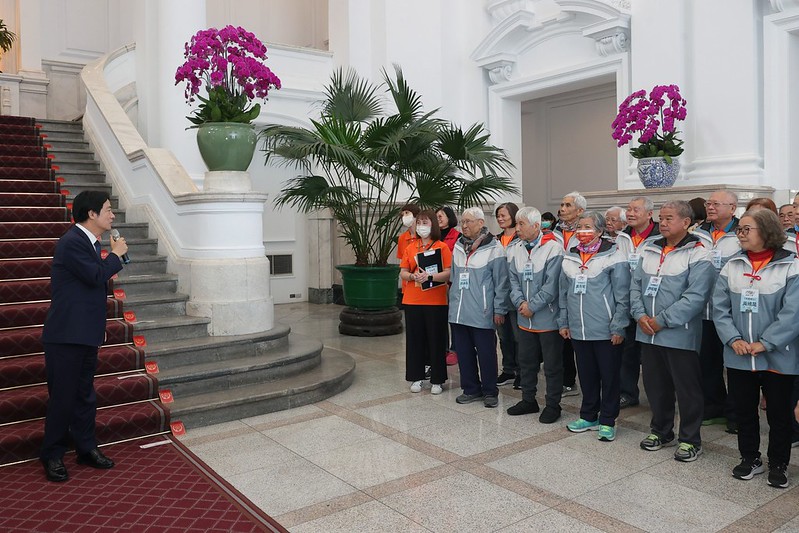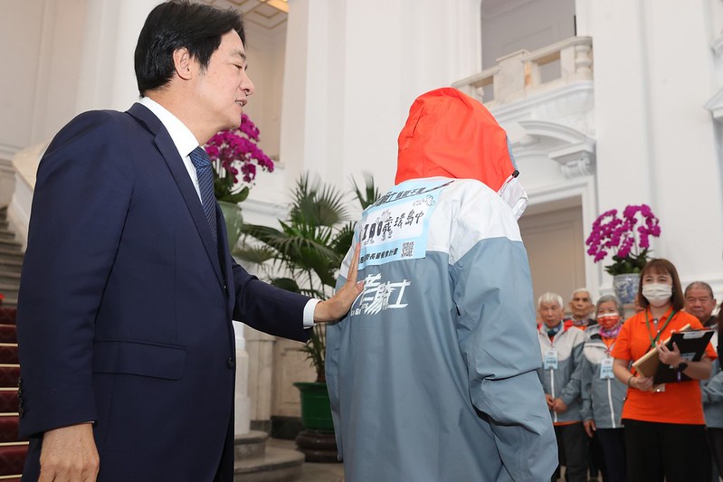 賴清德副總統今(14)日上午在總統府與「弘道老人福利基金會-2024不老騎士為愛千里」合影時表示,不老騎士勇敢追逐夢想,挑戰自我,公益助人,每一位不老騎士都有美好的生命故事,非常值得臺灣人學習。