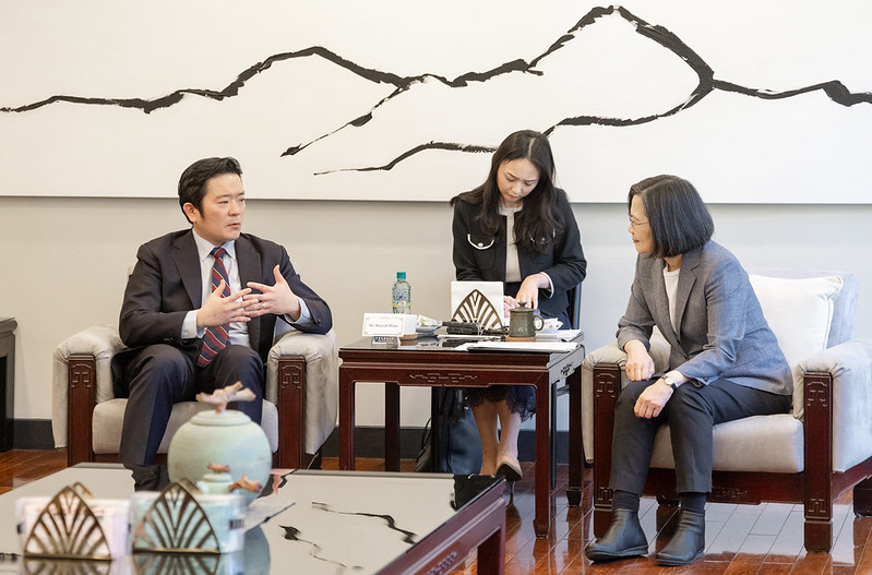 隨後,全球台灣研究中心執行長蕭良其(Russell Hsiao)致詞時表示,非常榮幸能跟蔡總統會面。「全球台灣研究中心」的專家致力於與臺灣的專家及政府官員交流。他們認為,蔡總統過去8年執政所取得的成就,確實令人矚目。