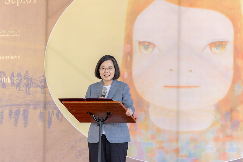 蔡英文總統今(28)日下午前往澎湖出席《跟著朦朧潮濕的一天去澎湖》開展記者會,感謝奈良美智先生為臺灣帶來溫暖、療癒人心的力量,更透過作品讓世界看見臺灣。期盼臺日友好的羈絆能持續加深,彼此在文化藝術及各領域的交流也更加緊密。她也邀請國人朋友一起來澎湖走走,欣賞奈良美智先生的作品、支持臺日文化交流。