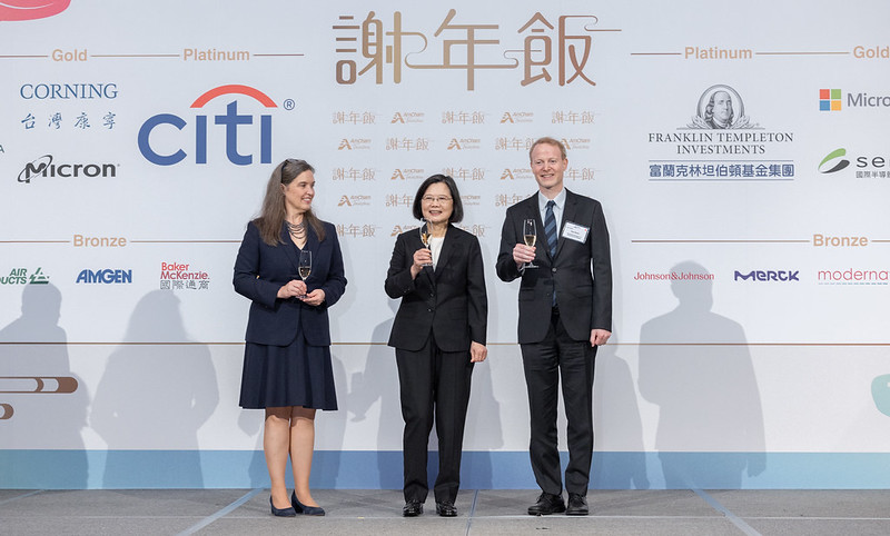 蔡英文總統今(28)日晚間出席「台灣美國商會」(AmCham Taiwan)2024謝年飯時表示,過去幾年,全球共同經歷許多波折,臺灣在面對不確定時展現出韌性及可靠性,同時也看到臺美間歷久彌新的夥伴關係。總統感謝美國商會多年來堅定支持臺灣,持續對臺灣保持信心,相信臺灣將在共同打下的堅實基礎,以及自由民主的道路上不斷前行,並期盼臺灣與美國商會持續獲致新成就,設立更高目標。