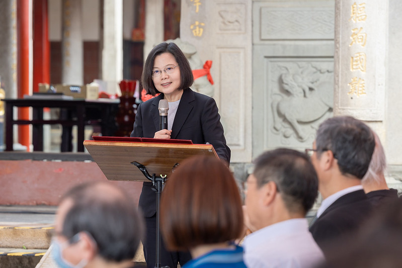總統表示,今天我們齊聚在這裡,就是希望可以凝聚客家人的力量,團結發揚義民爺的忠義精神,讓世世代代繼續守護臺灣。她要感謝褒忠亭義民廟林光華董事長及新竹縣楊文科縣長,在地對客家文化的建設及規劃,相信在她剩下的任期及下一任總統任內,都會持續地推動,讓一代傳一代,客家文化永遠是臺灣文化的主流。