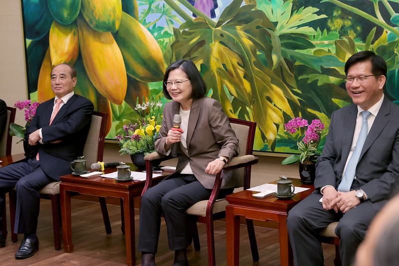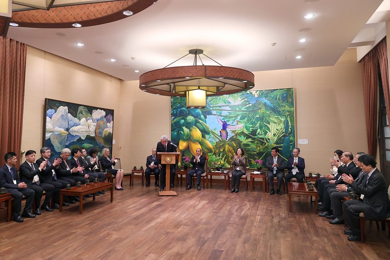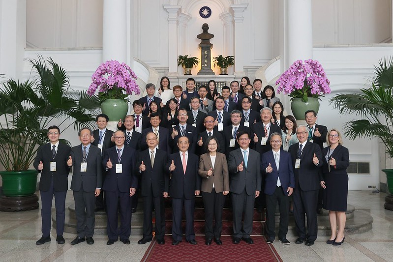 訪賓一行由生策中心董事長王金平及評審團總召集人陳維昭率領,衛福部部長薛瑞元陪同,前來總統府晉見總統,總統府秘書長林佳龍也在座。