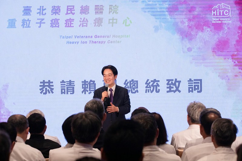 賴清德副總統今(10)日上午參訪「臺北榮民總醫院重粒子癌症治療中心」,感謝醫護人員對全臺人民健康的貢獻與付出。並提到,他在競選期間提出「健康臺灣」的國政願景,其中「百億癌症新藥基金」就是希望結合大家的力量打擊癌症、延長國人壽命。他也期盼大家可以共同為民眾的健康做進一步貢獻,讓國人更健康、活得更久。