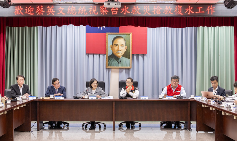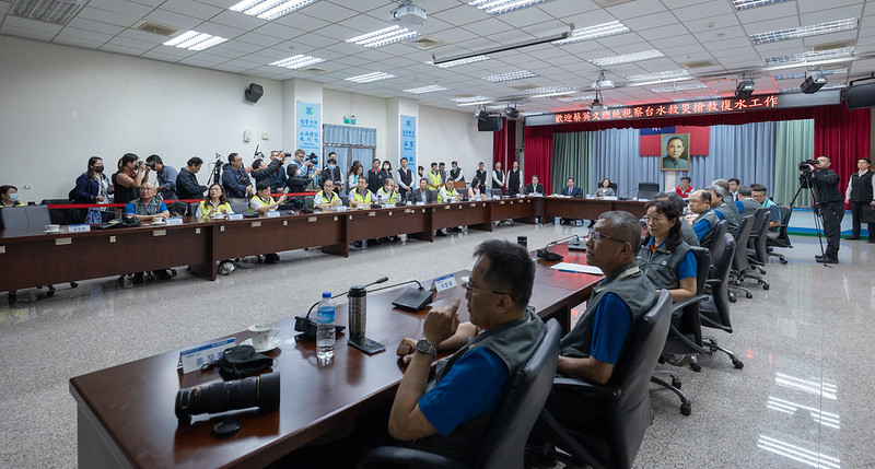 總統抵達後,首先觀看救災紀實影片,並聽取台水公司李嘉榮董事長說明救災搶救復水工作情形。