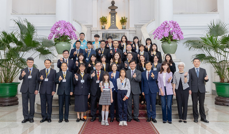 訪賓一行由中華創新發明學會理事長吳國俊率領,經濟部次長陳正祺陪同,前來總統府晉見總統,總統府秘書長林佳龍也在座。