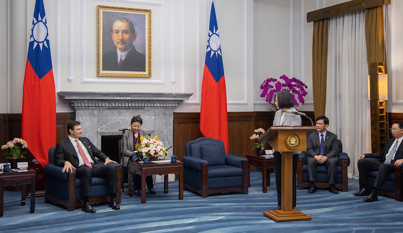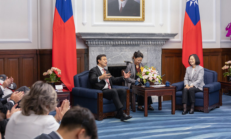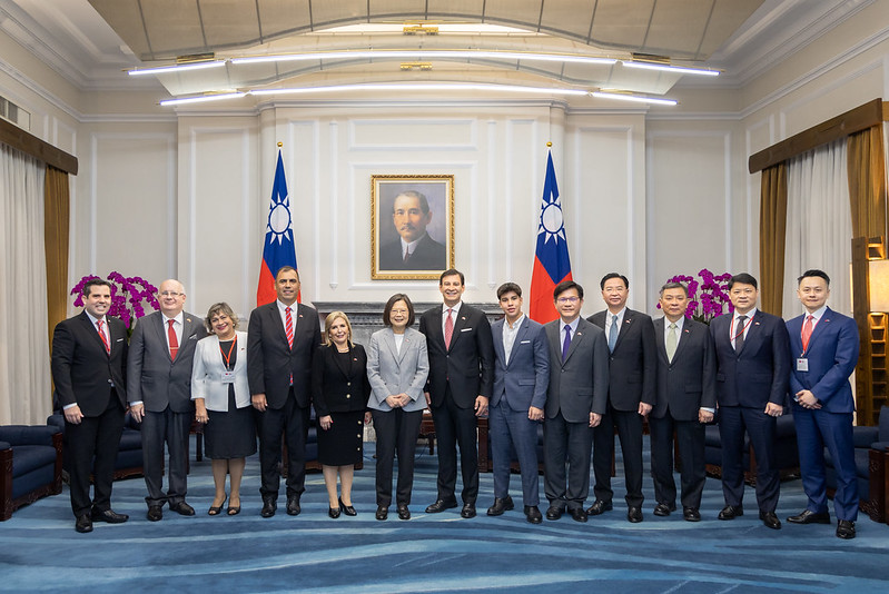 訪賓一行由外交部長吳釗燮陪同,前來總統府晉見總統,總統府秘書長林佳龍也在座。