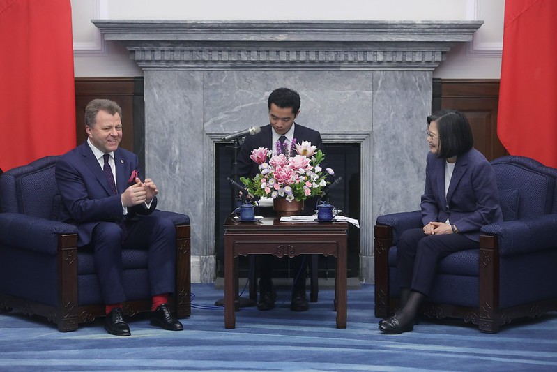 蔡英文總統今(18)日上午接見「立陶宛外交部前政務次長阿頓梅納斯(Mantas Adomėnas)暨智庫學者訪問團」,感謝立陶宛政府及國會多次表達對臺海和平穩定的重視,及支持臺灣的國際參與。並指出,兩國不僅在農業、半導體及醫藥衛生等領域展開合作,也透過「中東歐基金」加強雙邊經貿合作,期盼兩國持續拓展交流,共同壯大民主陣營的力量,為全球繁榮發展做出貢獻。