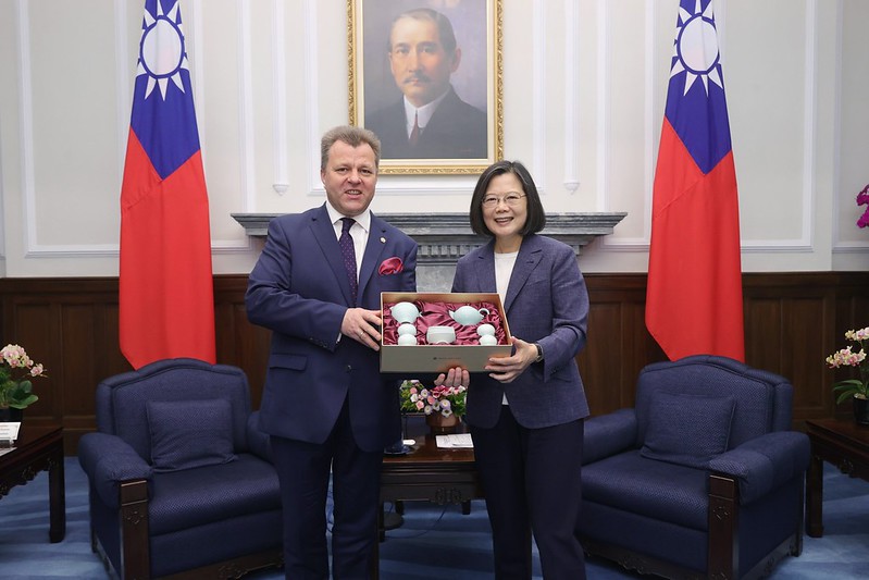 訪賓一行由外交部長吳釗燮及立陶宛貿易代表處代表盧思融(Paulius Lukauskas)陪同,前來總統府晉見總統,總統府秘書長林佳龍也在座。