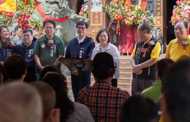 總統致詞時表示,很高興再次來到壽生廟參拜,和最熱情的高雄鄉親們見面。她要感謝大家過去8年來對她的溫暖支持,這幾年,臺灣雖然面臨許多挑戰,但因為有大家的團結打拚,讓政府有更多力量為國家做事、給人民最好的照顧,並持續推動地方建設,讓臺灣進步。