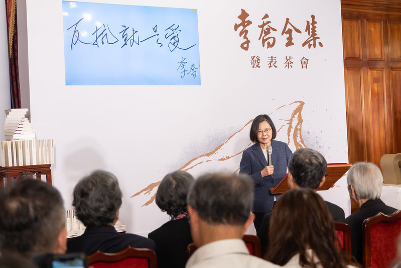 總統再次感謝李喬老師,為臺灣歷史進行這麼長時間的創作和書寫。李喬老師曾說:「我的文學始終志在反抗」,這是他身為一個公共知識分子,最讓我們敬佩的精神。她認為,李喬老師是客家文學最重要的代表性人物,在她擔任民進黨黨主席、經歷艱困的時期,李喬老師都支持著我們,在每一次重要的時刻,都能看見李喬老師坐在台下,默默地給予支持與鼓勵,不僅要感謝李喬老師對臺灣文學的貢獻,更要感謝他對臺灣民主與自由發展的貢獻。