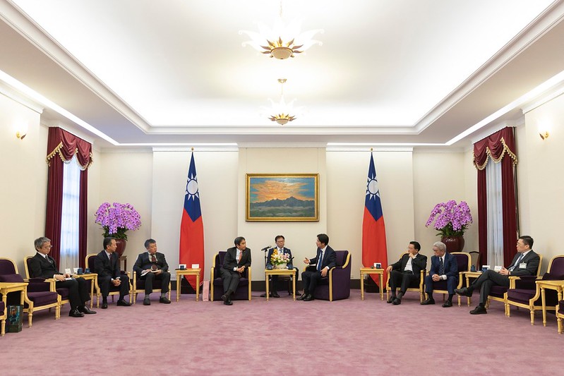 訪賓一行由外交部長吳釗燮、臺灣日本關係協會秘書長范振國陪同,前來總統府拜會副總統,國家安全會議副秘書長徐斯儉也在座。
