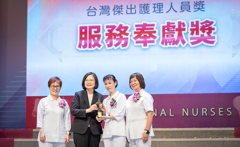 隨後,總統親頒「台灣護理典範獎」、「台灣傑出護理人員獎」及「台灣護理先驅-周美玉女士薪傳獎」予各得獎人員。