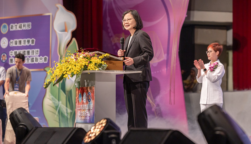 蔡英文總統今(9)日下午出席「113年國際護師節聯合慶祝大會」時表示,護理工作是醫療體系重要的一環,政府8年來持續推動各項政策,希望提供護理人員更多支持。並指出,從3月1日開始,「三班護病比」新制正式上路,同時也啟動「三班護病比」入法研議,希望降低醫院護理工作的負荷。她強調,留任護理人員、改善職場環境是政府的重要目標,在政策推動上也要更貼近護理師的需求,期盼未來大家持續協助政府,共同打造更友善的護理職場環境。