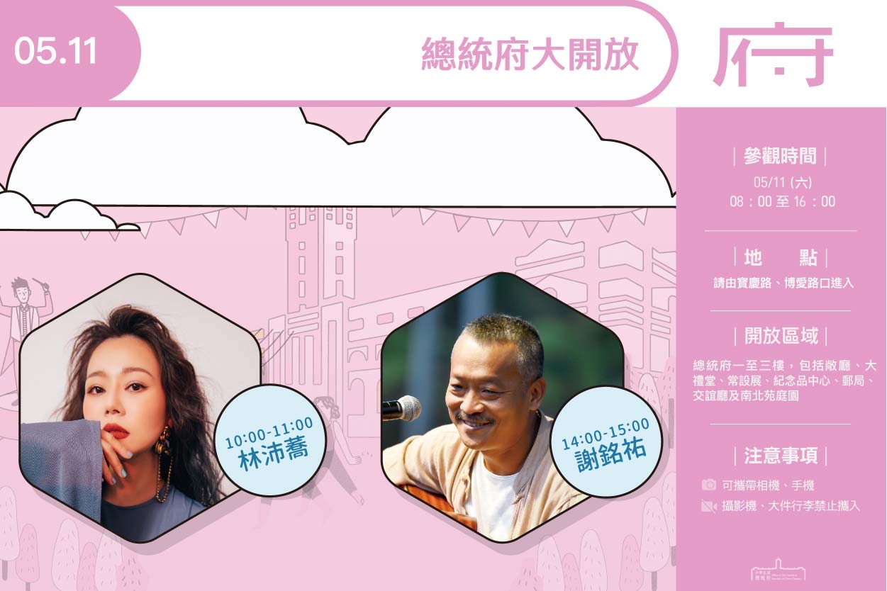總統府5月11日開放參觀 由客語歌手林沛蕎及臺語歌手謝銘祐歌唱表演
