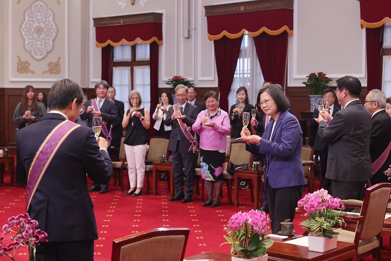 總統授勳後致詞時表示,今天很高興透過這場授勳典禮,感謝執政團隊和防疫團隊的貢獻。過去8年,儘管面臨許多挑戰,但因為有大家共同打拚,臺灣才能自信、勇敢地大步前進,走向世界。