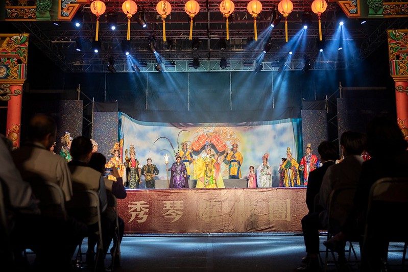 接著,副總統與民眾一同欣賞「秀琴歌劇團」表演「蟠桃大會慶狀元」戲曲,享受臺灣傳統戲曲的獨特魅力。