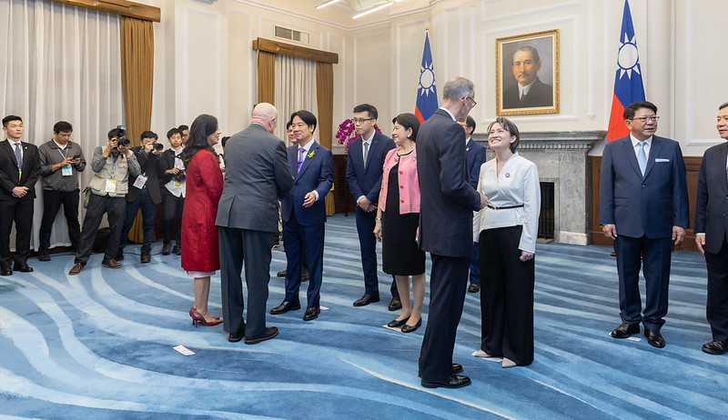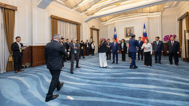 賴清德總統伉儷偕同蕭美琴副總統今(20)日上午在總統府接受來臺參加「中華民國第16任總統副總統就職典禮」的邦交國與友好國家元首、特使及政要友人致賀。