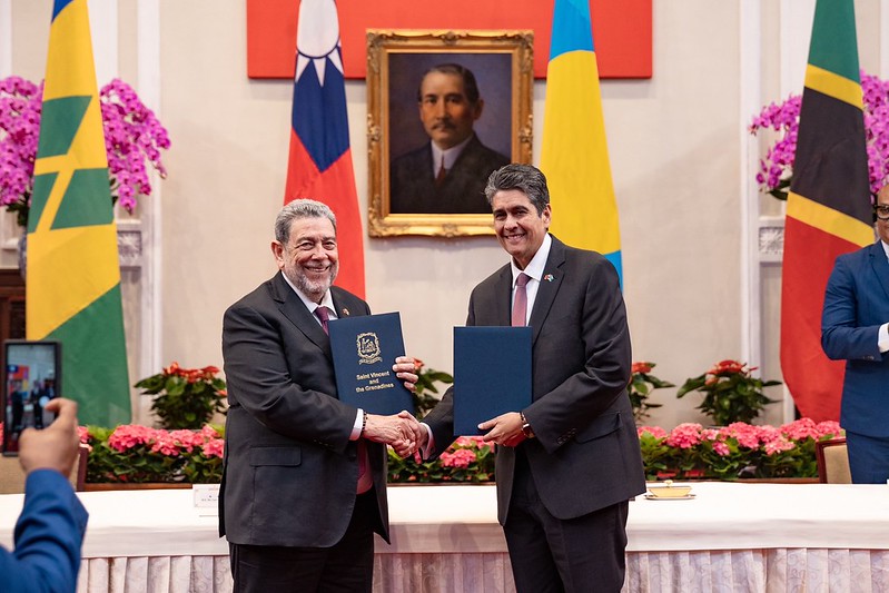 總統抵達會場後,首先見證帛琉駐臺大使歐儒侃(David Adams Orrukem)與聖克里斯多福及尼維斯聯邦駐臺大使范東亞(Donya Lynex Francis)簽署兩國建交公報;接著見證帛琉總統惠恕仁(Surangel S. Whipps, Jr.)與聖文森國總理龔薩福(Ralph Gonsalves)簽署兩國建交公報。