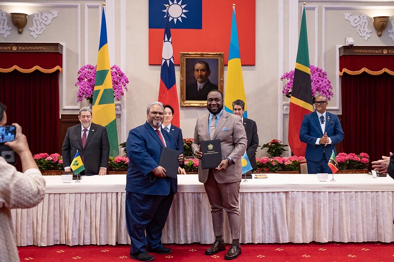 總統見證「帛琉共和國-聖克里斯多福及尼維斯聯邦」及「帛琉共和國-聖文森及格瑞那丁」簽署建交公報