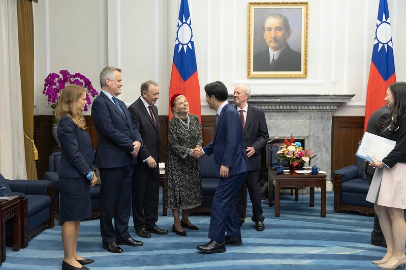 總統表示,相信訪賓透過這次的來訪,不僅彰顯臺灣和英國的友好關係,也為未來雙方的互動交流持續累積基礎。他感謝英國上議院副議長羅根勳爵(Lord Rogan)積極推動英國的友臺力量;也感謝英國下議院外交委員會以及國防委員會,在去年發表印太報告,展現對臺海和平的重視。