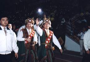 這次的運動會由屏東縣主辦,在青山柔水環繞的屏東縣裡,三十三個鄉鎮中有八個鄉鎮為原住民鄉,又以排灣族和魯凱族為主,共有六萬多人,佔全部原住民同胞的五分之一。我們看到今天的開幕典禮,由五千名原住民同胞參加演出,以配合屏東特色及魯凱族農閒豐收來慶祝,也充分展現了蘇縣長與全體縣民的熱忱,在此,我們深表感謝。