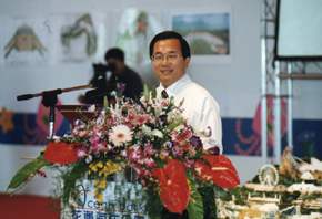 總統也讚許花蓮海洋公園的規劃,甚為符合知識經濟「創新、速度、進取、積極」的精神,因為觀光產業只要比別人新、比別人快、有價值,並具有從無到有、由下而上、勇往直前奮鬥不懈的台灣精神,就完全具備知識經濟的內涵。總統也指出,趙董事長曾說過,申請一張雜項執照,就要蓋超過八百個印章,申請正式執照,甚至要一千八百個印章以上,我們是民主法治國家,雖然要按制度來,但是制度是可以改善的,效能是可以提升的,政府要替工商界來服務,不能成為企業的絆腳石。總統也期勉所有的公務人員應該有為人民、為企業界穿鞋子、綁鞋帶的服務精神。對於花蓮海洋公園在簡報中提出的一些請求事項,總統也請經建會要全力以赴,協助問題的解決,以共創雙贏。