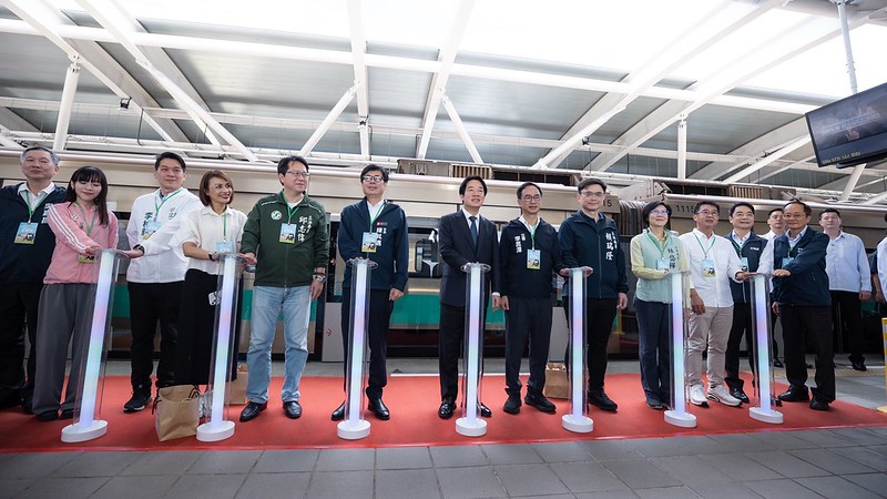 隨後,總統與現場貴賓一同在月臺上進行啟動儀式,並搭乘捷運至R24岡山高醫站,親自體驗高雄捷運的便利。