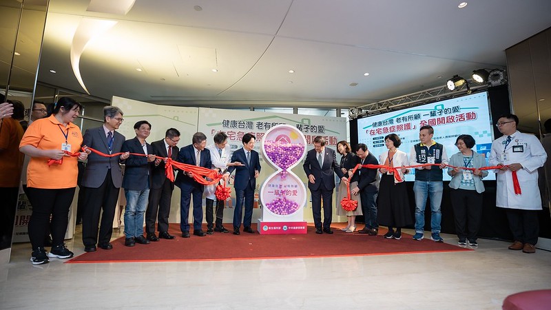 隨後,總統與現場貴賓一同進行啟動儀式。接著觀看「在宅急症照護視訊」實作示範,總統也親自透過視訊關心長者身體健康狀況。