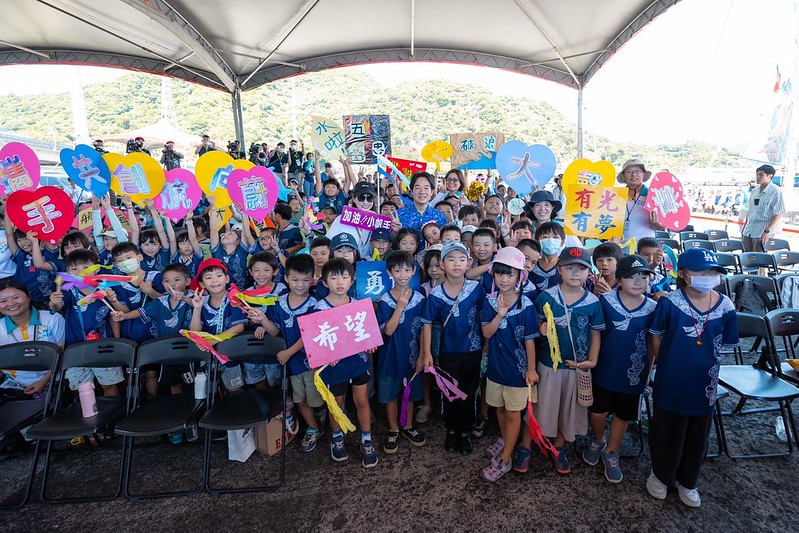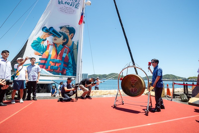 隨後,總統與登船的小帆手代表擊掌,表達祝福之意,並與貴賓一同見證啟航儀式。
