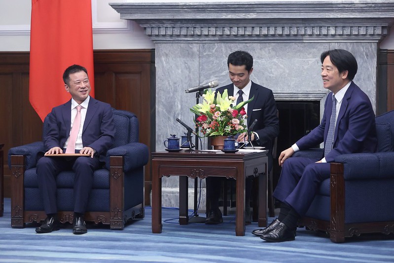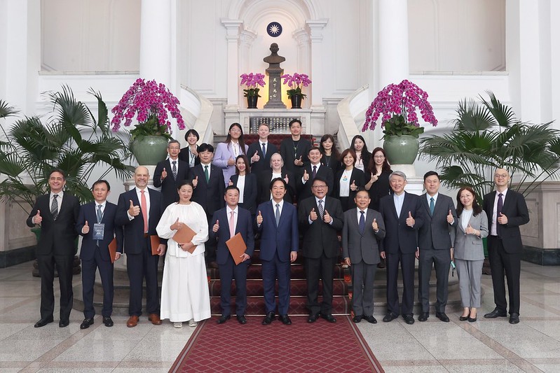 訪賓一行由行政院政務委員兼國家發展委員會主任委員劉鏡清及經濟部長郭智輝陪同,前來總統府晉見總統,總統府秘書長潘孟安也在座。