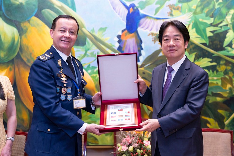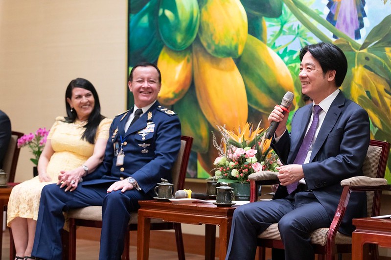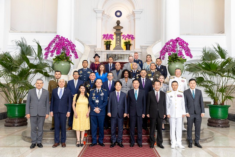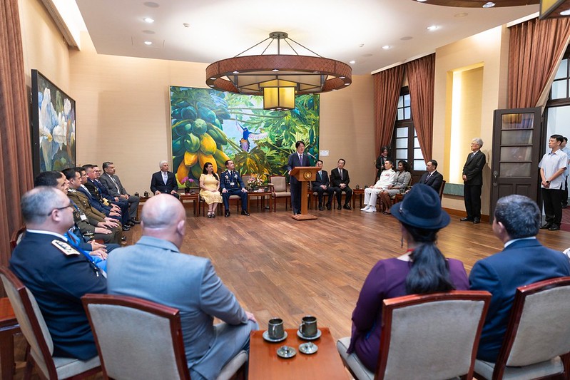 訪賓一行由國防部長顧立雄、國防大學校長劉志斌、貝里斯駐臺大使碧坎蒂(Candice Pitts)、瓜地馬拉駐臺大使巴迪亞(Oscar Adolfo Padilla Lam)、巴拉圭駐臺公使羅艾黎(Adriana Raquel López de Puerta)陪同,前來總統府晉見總統,國家安全會議秘書長吳釗燮也在座。