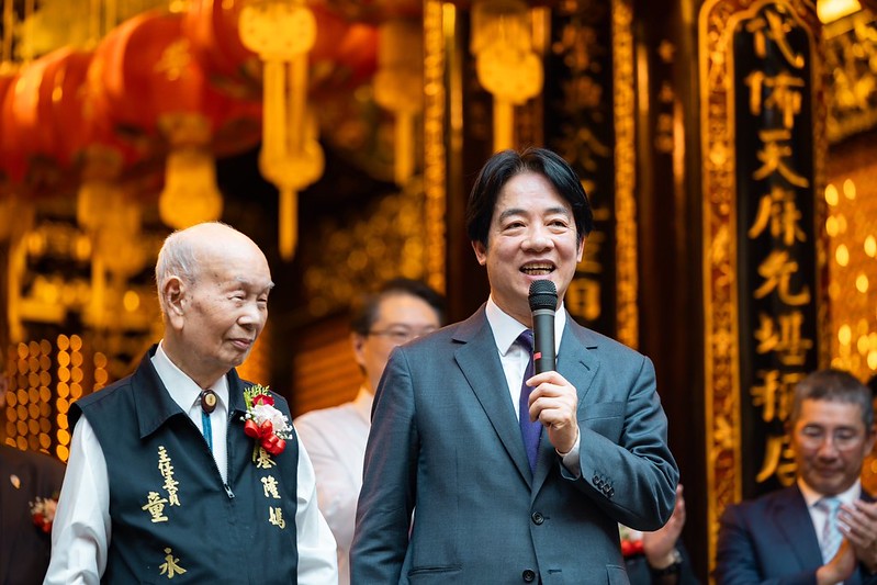 總統致詞時表示,很高興來基隆慶安宮參拜媽祖,慶安宮是基隆也是臺灣的信仰中心,今天來首先要感謝天上聖母媽祖保祐2024年大選平安順利。其次,他要為臺灣祈福,祈求媽祖保佑臺灣國泰民安、風調雨順,地方四時無災、八節有慶,所有善男信女闔家平安,事業有成。他很榮幸代表人民前來致贈「安海福民」匾額,感謝媽祖對臺灣這塊土地及全國人民的庇佑。