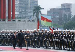 陳總統水扁伉儷今天代表中華民國政府與人民,以軍禮歡送結束訪華行程的布吉納法索總統龔保雷伉儷及訪問團團員。