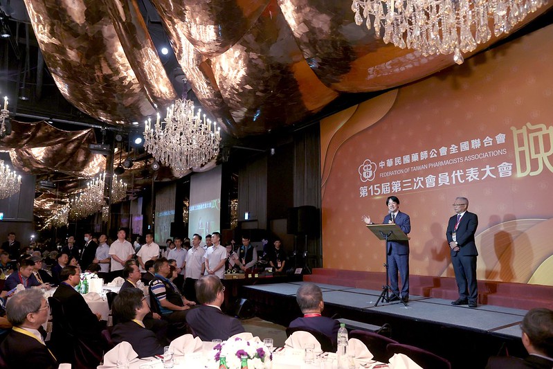 賴清德總統今(14)日晚間出席「中華民國藥師公會全國聯合會第15屆第3次會員代表大會晚宴」,感謝藥師們為國人健康的貢獻。期盼大家共同努力,解決藥品供應問題,妥善照顧民眾健康,合作打造「健康臺灣」,延長國人壽命及增加健康年數,讓國家越來越健康,國人生活更幸福。