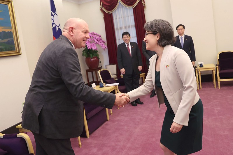 蕭美琴副總統今(18)日上午接見「愛爾蘭參議院議員訪問團」,首先代表賴總統和臺灣政府歡迎訪賓,並表示,很高興大家在百忙之中抽空飛越半個地球來臺,也非常感謝訪團對臺灣人民持續的關注與支持。
