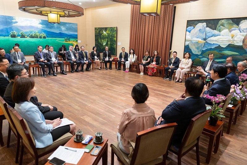 總統致詞時首先歡迎大家來到總統府,感謝世總及臺商朋友做為臺灣與各國的橋梁,讓世界看見臺灣,展現臺灣的實力。更難得的是,在臺灣有需要時,大家都會出現。像今年發生0403地震,世總在第一時間就捐助1千多萬元,協助花蓮災後重建,政府與社會都非常感謝。