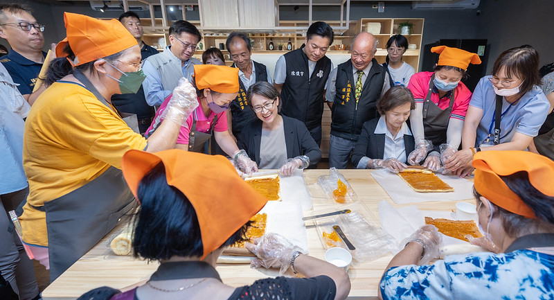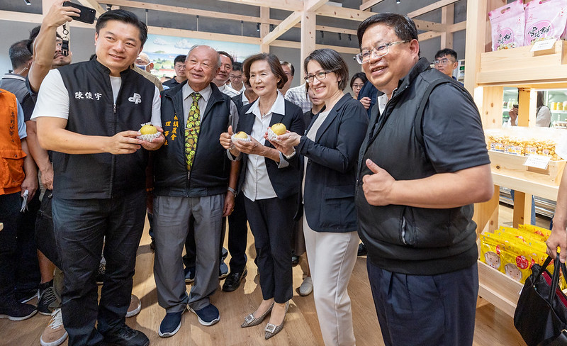 隨後,副總統與現場貴賓一同進行啟用儀式。接著參觀「頭圍農驛品牌館」,品嚐茂谷柑霜淇淋、茂谷果乾等農產品,並在食農教室家政幹部的教學下,體驗製作橘香蛋糕捲。