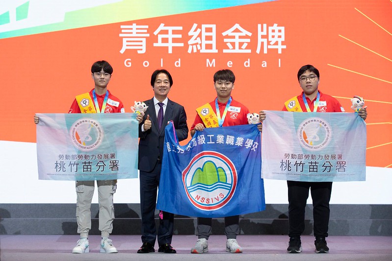 隨後,總統逐一為青年組金牌得獎選手配掛獎牌,肯定他們的優異表現。包括勞動部長何佩珊、教育部長鄭英耀及各國駐臺使節代表等亦出席是項活動。