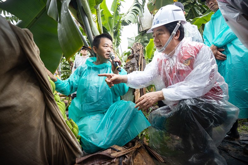隨後,總統驅車前往美濃果園,聽取農業部農糧署署長姚士源等簡報高雄市、屏東縣農業災情,並實地勘查果園受損情形。