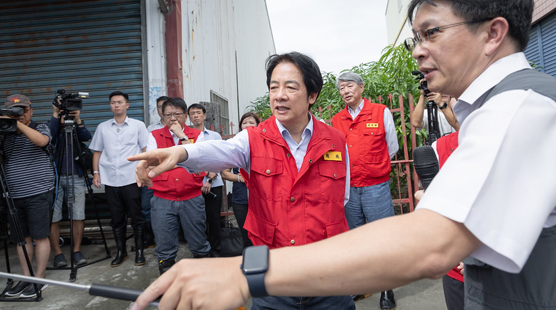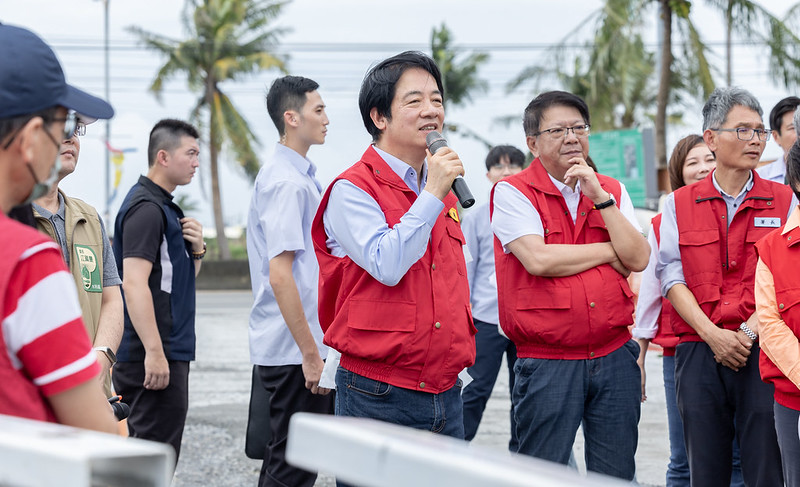 隨後,總統驅車前往東港大潭,聽取縣府說明屏東排水改善計畫及水利署報告屏東排水改善成效後,總統表示,此次颱風的路徑較為特別,它從北部經過後又南下,造成全臺灣都受影響。因此這兩天,中央政府兵分四路出來勘災,昨天他到高雄、行政院卓榮泰院長到雲林、嘉義及臺南、鄭麗君副院長到宜蘭、國防部顧立雄部長到屏東;今天,則換他來到屏東勘查不同的地方、卓院長到花蓮、鄭副院長到彰化及南投、公共工程委員會陳金德主委也到宜蘭另一個比較會淹水的地方勘查,期盼能與各縣市的地方政府共同合作、解決問題。