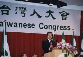 為發揚台灣人精神,團結世界台灣人的力量,台美人團體組織於去年十二月在美國首都華府,成立「世界台灣人大會」,表達支持政府推動改革及追求民主的決心,意義至為重大。本次會期雖只有短短的二天,議程相當緊湊,但是討論的議題攸關我國國際地位的提昇,意義非凡。相信藉由各位宏遠的見解,所獲得寶貴的結論,一定能夠有效提高我國在國際社會的尊嚴。