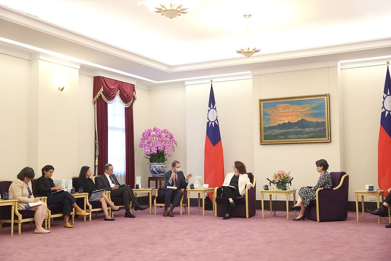 訪團成員包括布魯金斯研究院副院長兼外交政策主任莫淑珊(Suzanne Maloney)、中國研究中心主任兼臺灣研究講座何瑞恩(Ryan Hass)等,由外交部次長陳立國陪同,前來總統府拜會副總統。